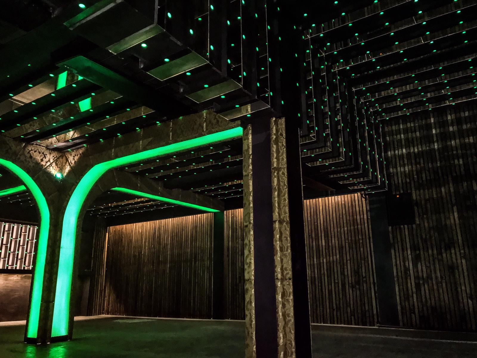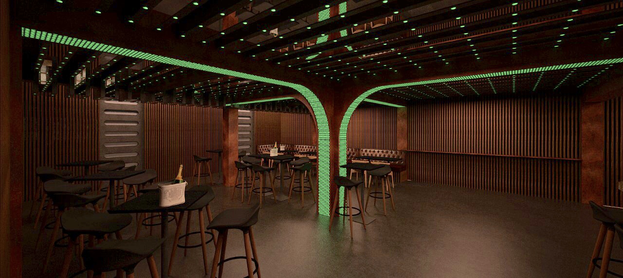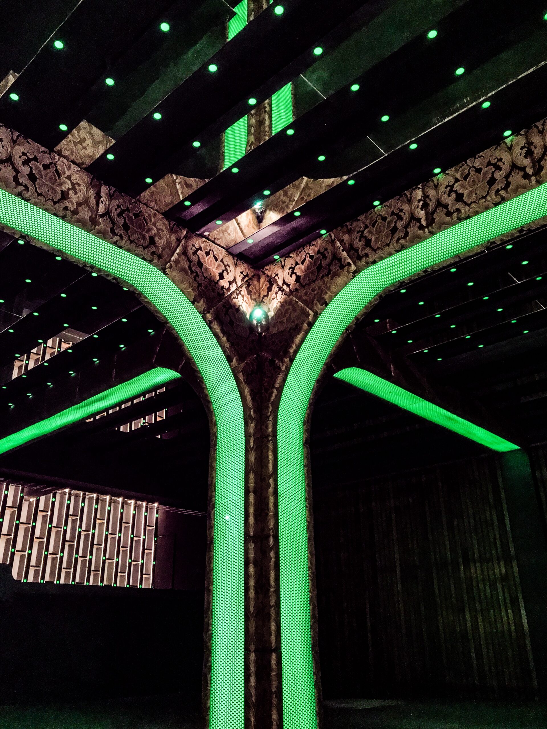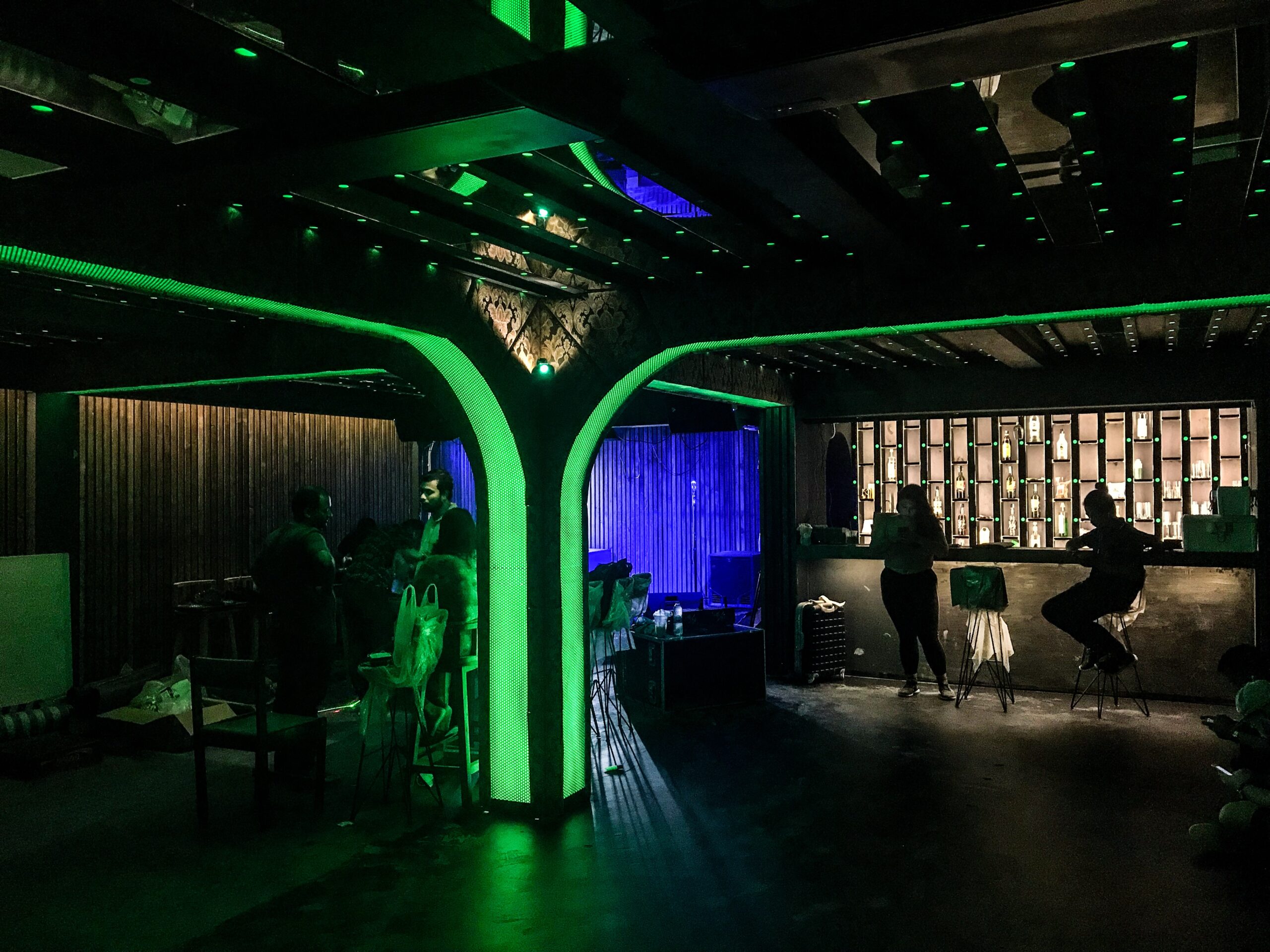 The copper exterior and vaulted entrance are only the introduction to 2 floors of texture and lighting that are signature to Colbys design language. Each floor has its unique vibe. The ground floor accommodating live music and a dancing crowd, while the top floor was tailored for a more comfortable cocktail lounge with a flare.